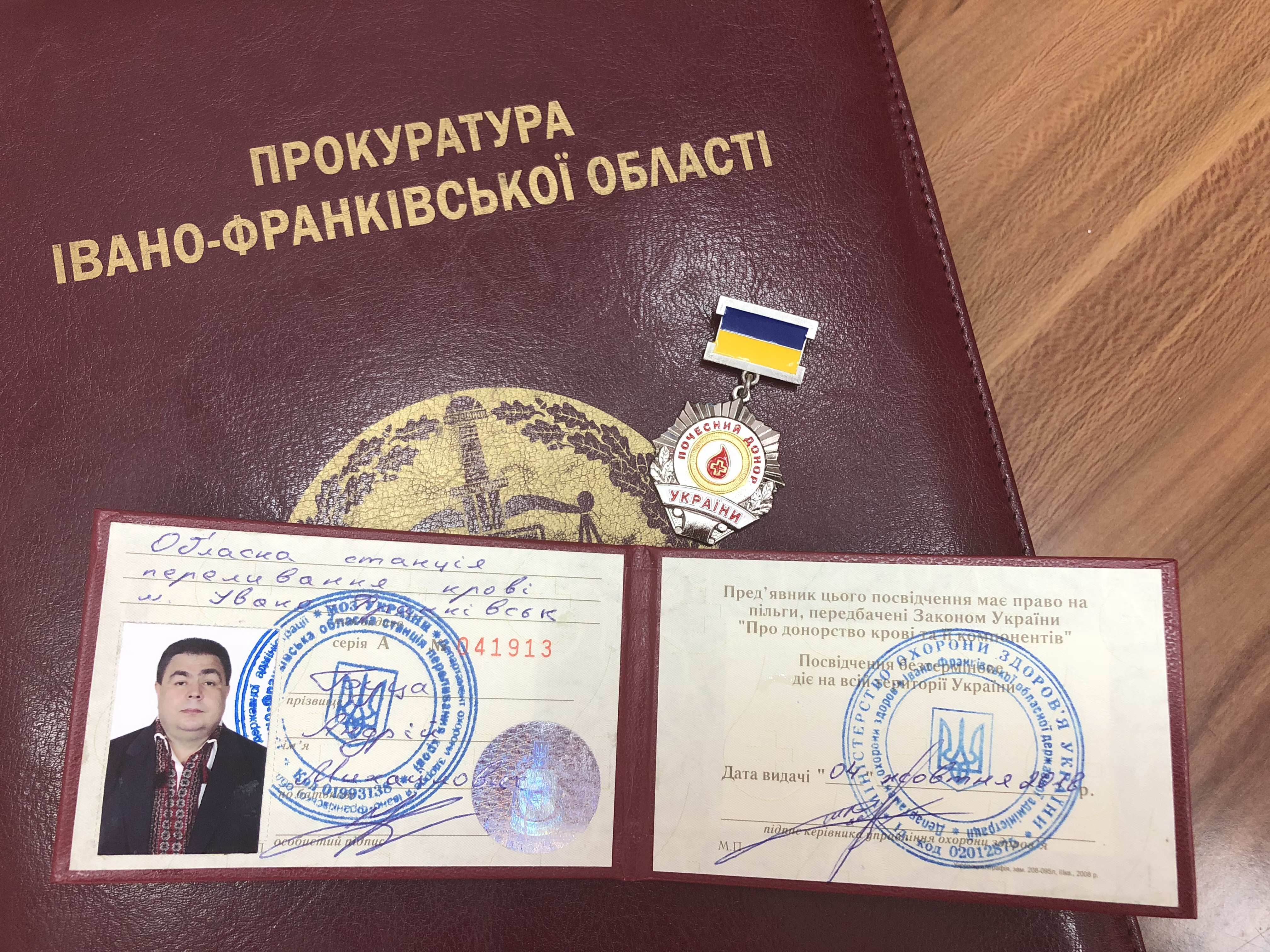 Колектив прокуратури Івано-Франківської області щиро вітає колегу з почесним званням та бажає стати «Заслуженим донором України».