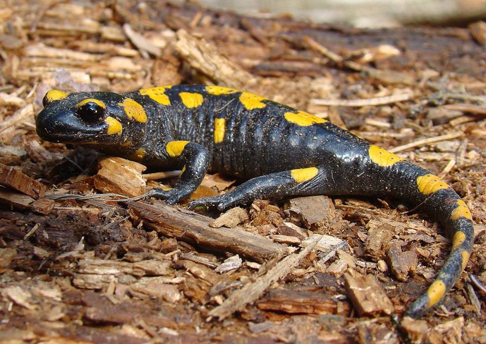 Довідково: Саламандра вогняна, або плямиста (Salamandra salamandra) – тварина класу земноводних роду Саламандра (Salamandra). Назва "плямиста саламандра" відноситься також і до іншого виду, Ambystoma maculatum, як і родова назва посилається на велику групу саламандр – хвостатих земноводних із струнким тілом. Інші назви: дощівка, сисмолоко, вогняна ящірка, ящур, сисак, качур.