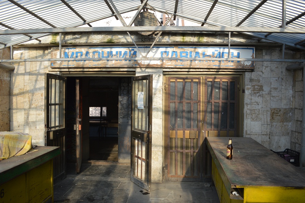 Старий молочний павільйон зустрічає облупленою вивіскою, порожніми пляшками і стаканчиками біля входу та «гробовою» тишею. Порожні прилавки припали пилом, дах протікає від чого на стелі утворилися дірки і грибок, світло є лише де не де, радянські холодильники обмотані іржавими ланцюгами… З’являється відчуття, що ти потрапив у фільм жахів. Доповнюють картину десятки закритих торгових точок з написами, хто куди переїхав. Фактично, тут залишилися тільки дві точки з «молочкою». Продавчиня нарікає, що тепер люди не ходять у старий павільйон, тож якщо вона за день має хоч одного покупця – вже добре. Втім називати своє ім’я, або фотографуватися жінка не хоче.