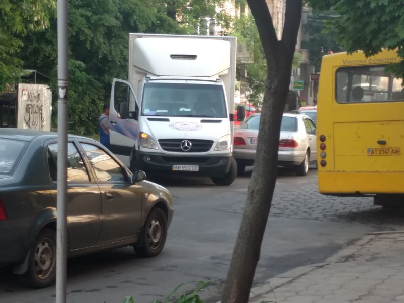 Наступна аварія трапилася близько 9 години на зупинці по вулиці Мазепи. Вантажний Mercedes не розминувся з легковиком тієї ж марки. Утворились незначні затори.