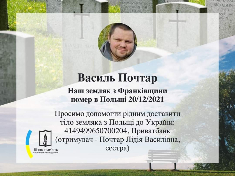 "Було йому всього 36 років. Працював в Польщі на тяжких роботах, брався за все, що давали та робив на совість. Без сина лишилася матуся, без брата - сестра.",- йдеться в повідомленні.