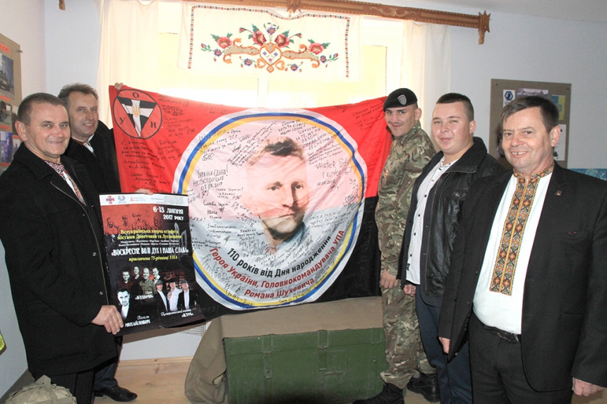 Нагадаємо, у липні, під час відзначення 110-річного ювілею генерала-хорунжого головнокомандувача УПА Романа Шухевича, представники братства ОУН-УПА та сільська громада Тишківців передали його воїнам АТО і творчій делегації з Івано-Франківщини, які повезли стяг на схід України.