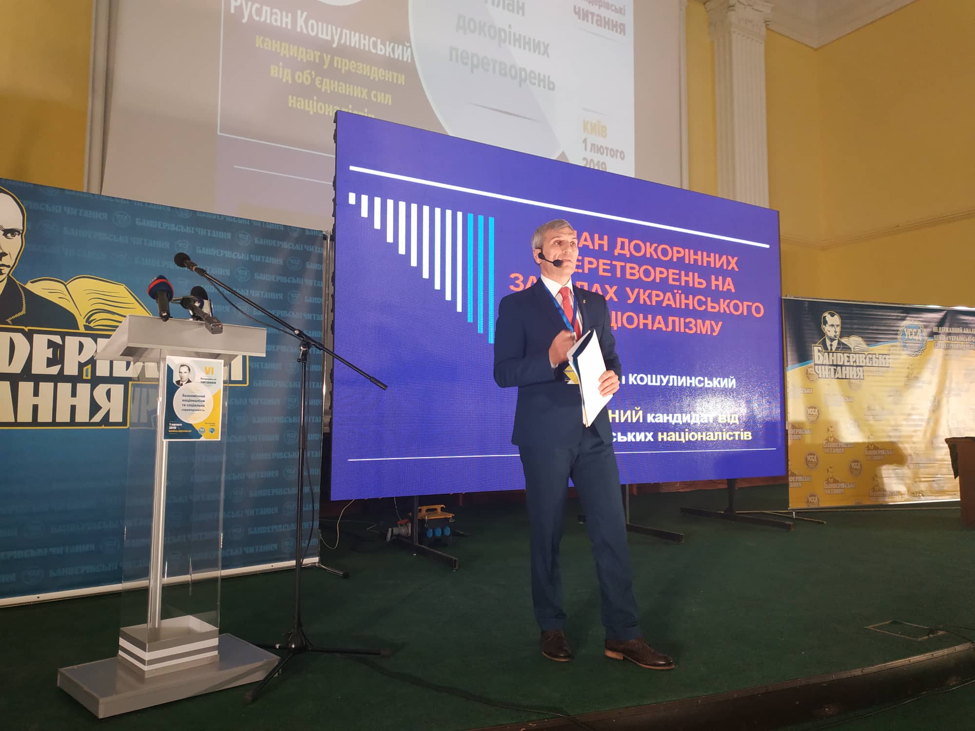 Кандидат у президенти України від націоналістичних сил Руслан Кошулинський  під час виступу зазначив, що завдяки економічному націоналізму можна реалізувати багато реформ, які покращать ситуацію в державі.