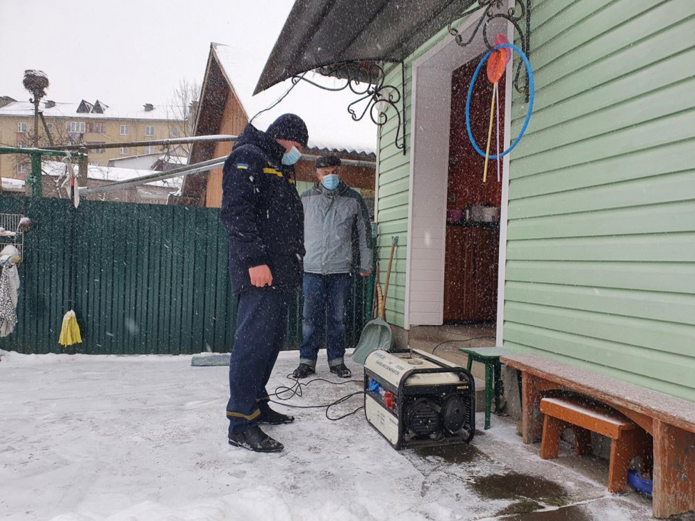 Щоб забезпечити безперебійну роботу електроживлення, надвірнянські рятувальники доставили до приватного господарства генератор «Hyundai-8500W» та провели підключення до кисневого апарату, а також провели інструктаж щодо правильної експлуатації генератора.