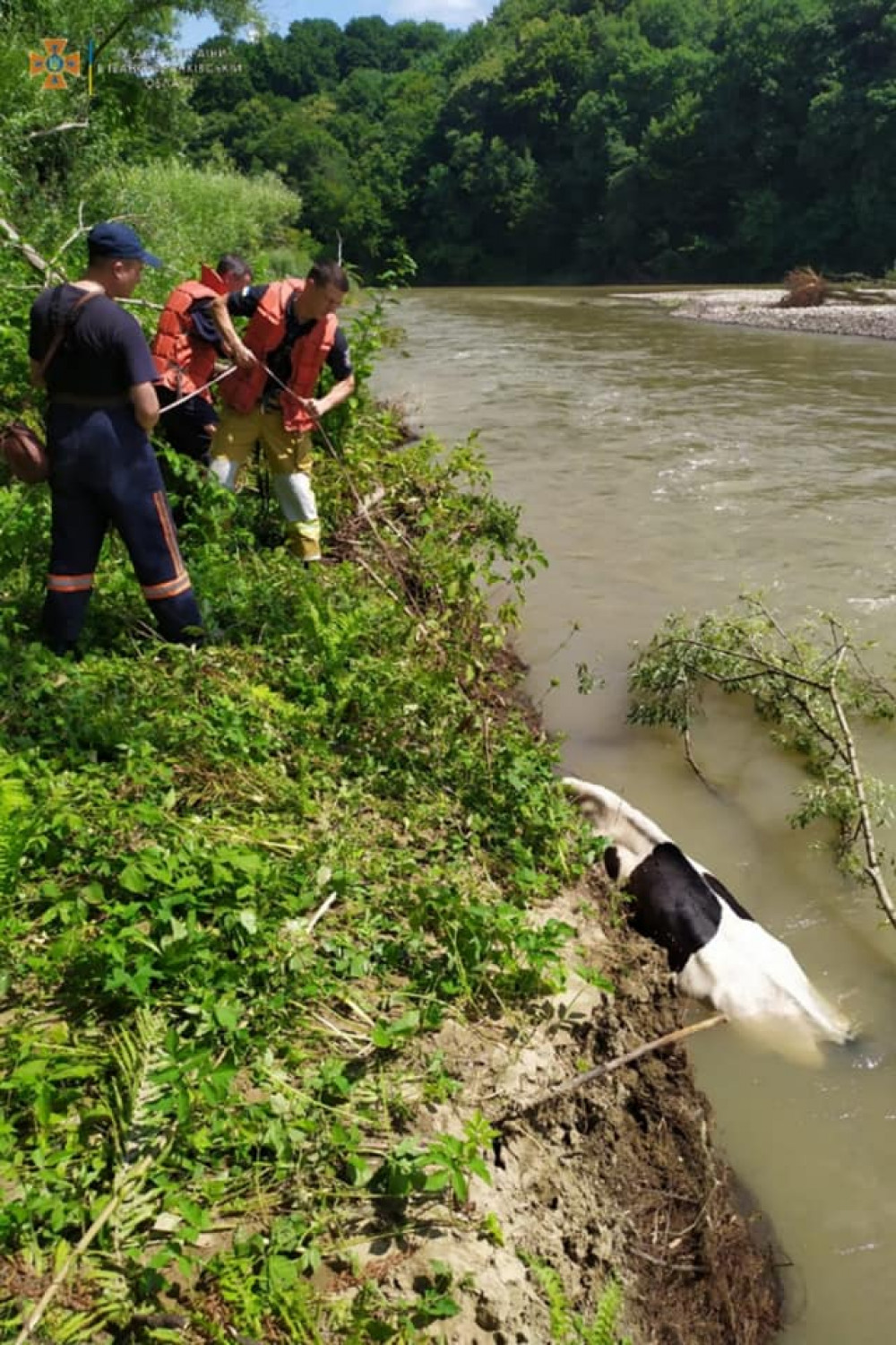 Рятувальники, прибувши до місця виклику, дісталися через хащі до річки, де на 1,5 метровій глибині знаходилась корова та чекала на допомогу.