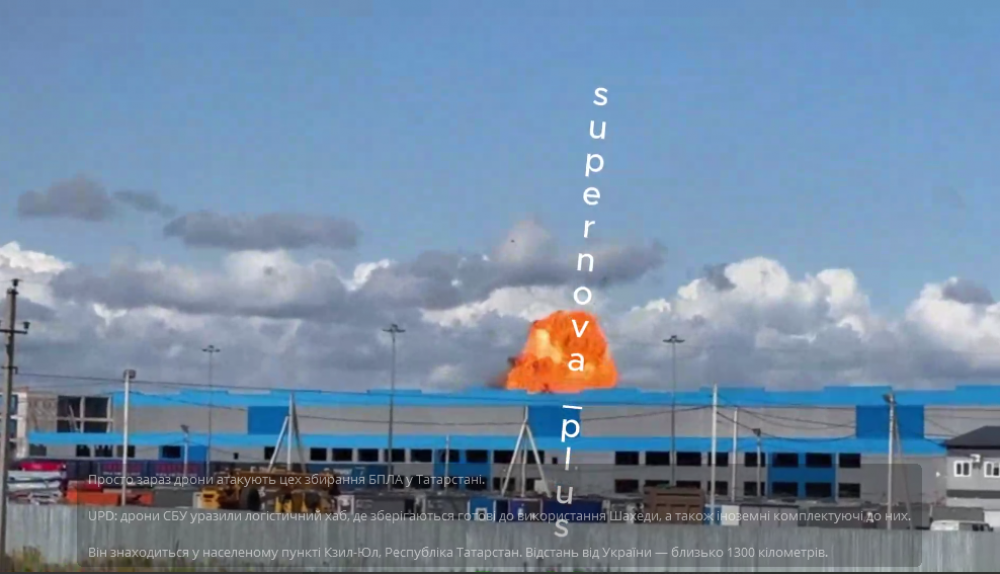Безпілотник ЦСО «А» СБУ влучив у будівлю логістичного хабу. Після вибуху розпочалася пожежа. Відстань від України до точки ураження — близько 1300 кілометрів.