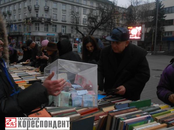 Книги іванофранківці приносять безкоштовно, стартова вартість однієї книги починається від 10 гривень, решта люди додають, хто скільки хоче. Гроші збирають не лише на торговиці, а й у супермаркетах міста, пише ГК.