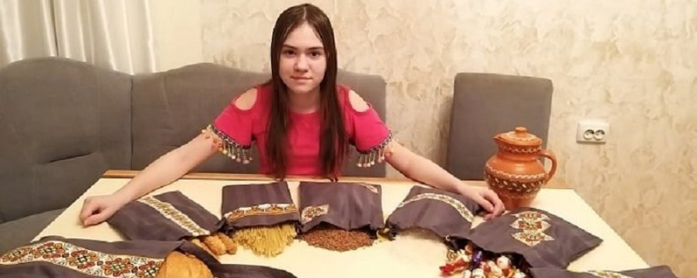 Свої вироби школярка оздобила готовим розмальованим декором, а також старою бабусиною скатертиною. Настині мішечки універсальні, в них можна зберігати крупи, печиво, цукерки, каву чи побутові дрібнички.