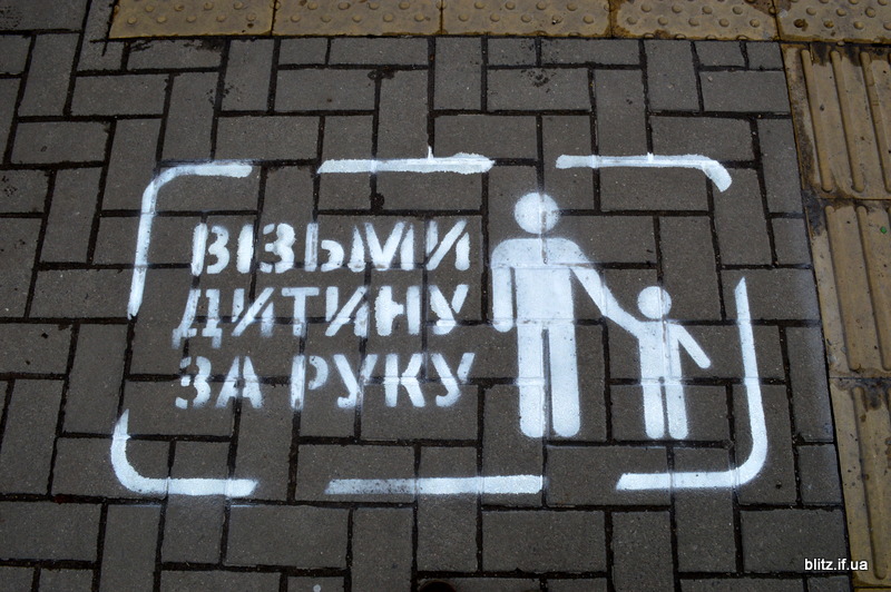 На перехресті вулиць Незалежності-Лепкого поліцейські перед пішохідними переходами за допомогою трафаретів нанесли попереджувальні надписи “Візьми дитину за руку”, "Зніми навушники", “Сховай телефон”, “Велосипедист” тощо, інформує кореспондентка Бліц-Інфо.