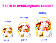 За скромними підрахунками, кошик-мінімум для сім’ї може коштувати від 300 гривень. Якщо ж брати по-багатому, то вийде на усі 600 гривень. Звичайно, щороку ми не купуємо самі кошики та рушнички до них, а тому витрачатися на придбання тари не будемо. Але зважте, що дитина також хоче, аби в неї у кошику було все, як у дорослих – і паска, і ковбаска. Тому варто подбати про наповнення і меншої копії святкового набору.
