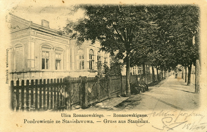 Австрійські видавці не балували увагою вулицю Романовського і випустили лише три поштівки з її видами. На двох представлені «порядні» кам’яниці, а ось третя зображує якусь хатинку за дерев’яним парканом. Листівка пройшла пошту в 1904 році. На той час у місті існувала ціла купа привабливіших об’єктів. Чому фотограф зупинився на цій хаті?