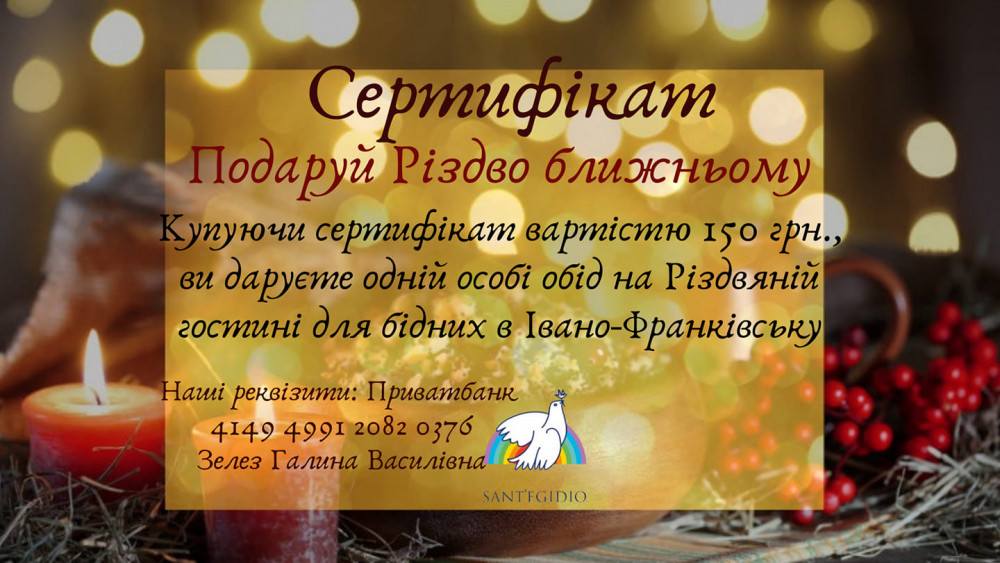 Спільнота Святого Егідія в Івано-Франківську щороку запрошує на Різдвяний обід близько сотні бідних і бездомних. А допомогають у цьому небайдужі, які купують спеціальні сертифікати.