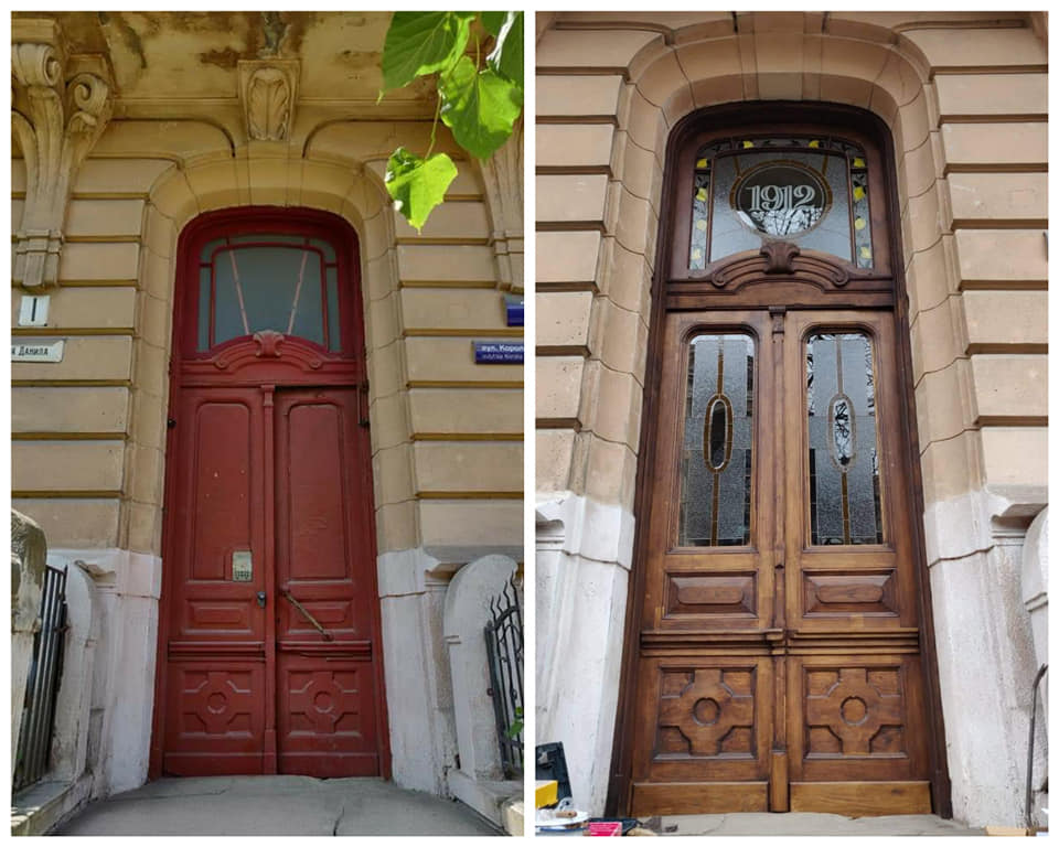 "Наглухо забиті в радянський час дверні отвори, з врізаним великим домофоном і купу разів перемальовані, двері нарешті відкрили своє істинне прекрасне обличчя! Сьогодні був монтаж фасадних дверей, тамбірні встановимо після вихідних. Фінансування має бути з програми "Бюджет участі", - написала Козакевич.