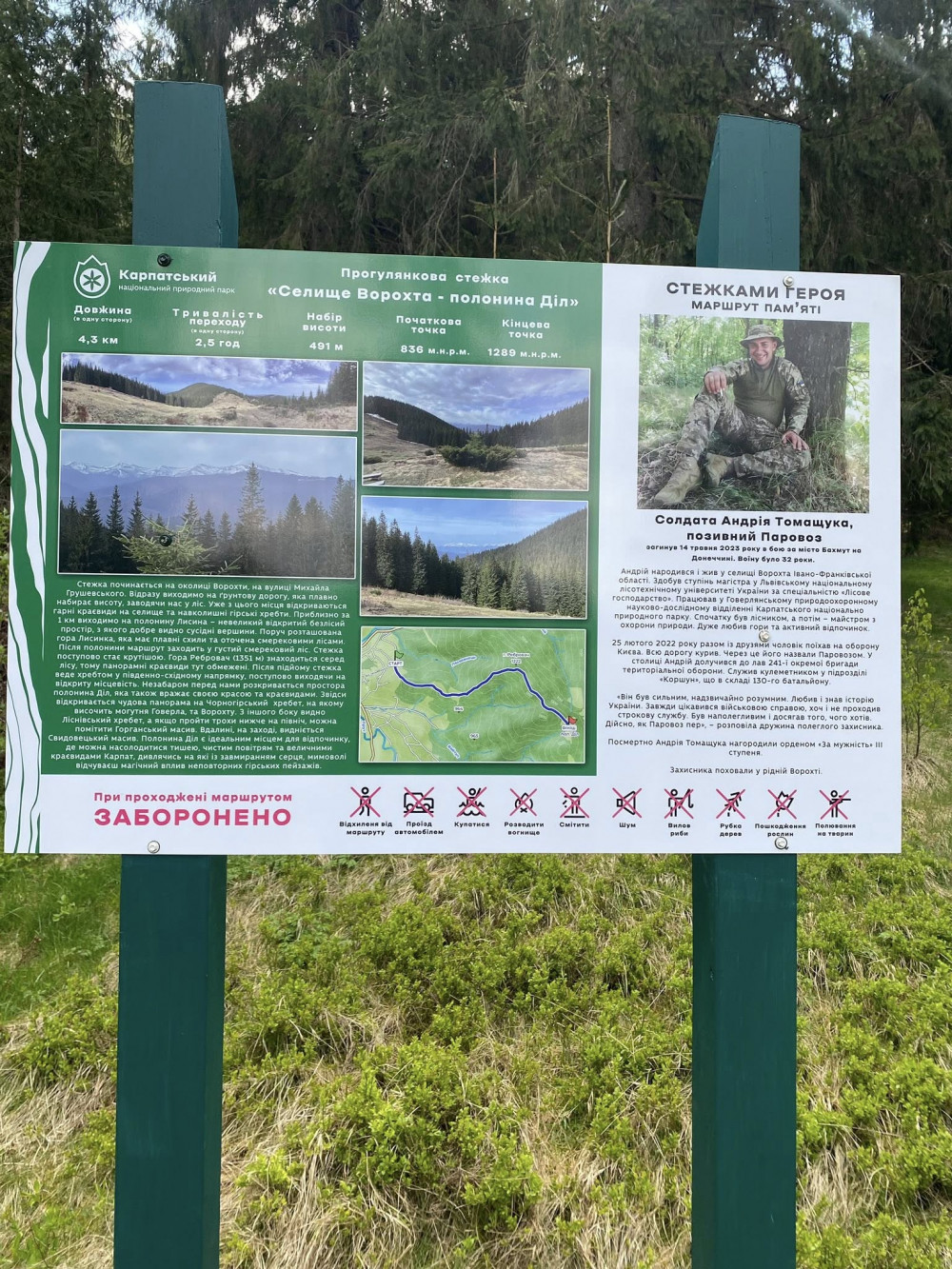 У середу, 14 травня, у селищі Ворохта відкрили перший пам’ятний піший маршрут, присвячений загиблому захиснику України — Андрію Томащуку.