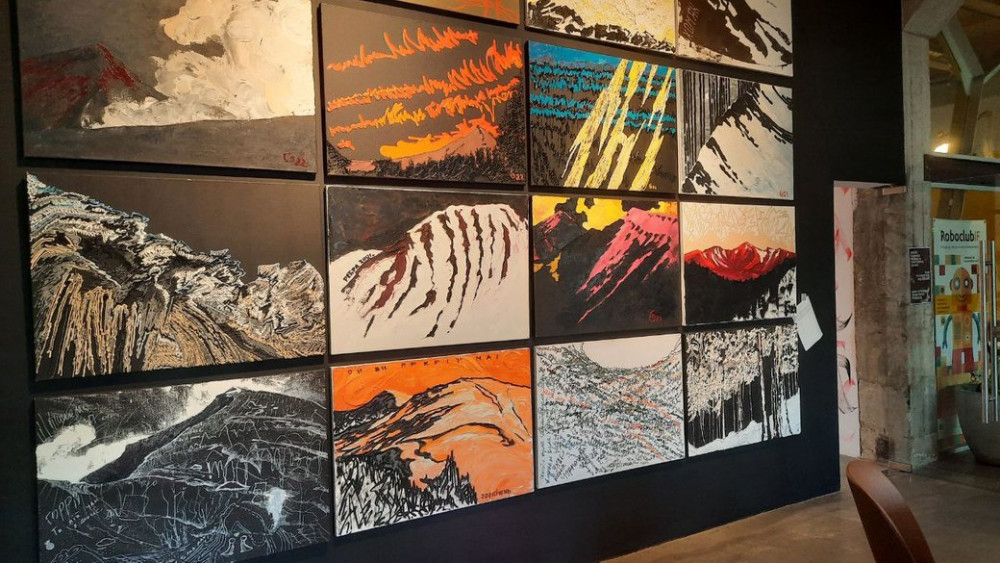 "Там є полотно, олійна фарба, пейзаж, Карпати — тобто точки, на яких ми стоїмо. Зараз тут роботи тільки мої. Вони тут — до 3 вересня. Далі буде виставка однієї картини Миколи Панакова", — каже Ярема Стецик.