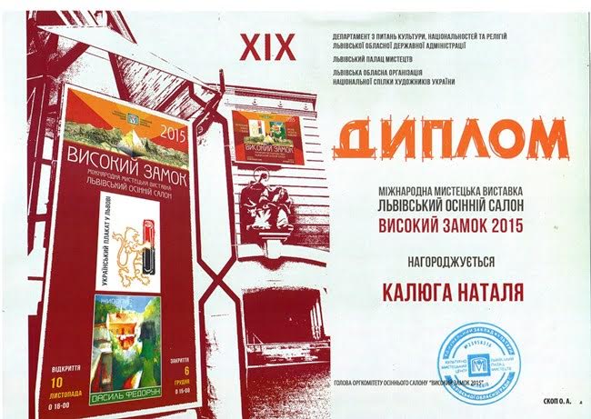 Студентка Інституту мистецтв ПНУ імені Василя Стефаника Наталія Калюга, яка взяла участь у мистецькому конкурсі, здобула диплом міжнародної виставки «Львівський осінній салон. Високий замок 2015». Конкурсні роботи Наталі та її керівника, доцента кафедри дизайну і теорії мистецтва Інституту мистецтв Надії Бабій - це серія плакатів екологічного спрямування «Новий код твоєї нації».