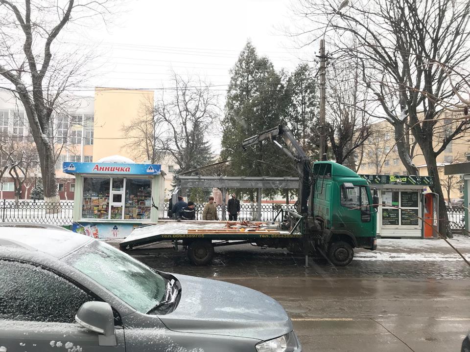 На вулиці Чорновола, біля Прикарпатського університету встановили каркас нової зупинки.