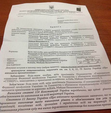 Штаб національного спротиву отримав рішення Шевченківського суду про примусове виселення з Будинку профспілок.