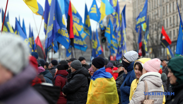 Як повідомляє кореспондент Укрінформу, участь в акції взяли близько 300 осіб. Люди тримали партійні прапори й скандували гасла на підтримку чесних виборів без фальсифікацій.