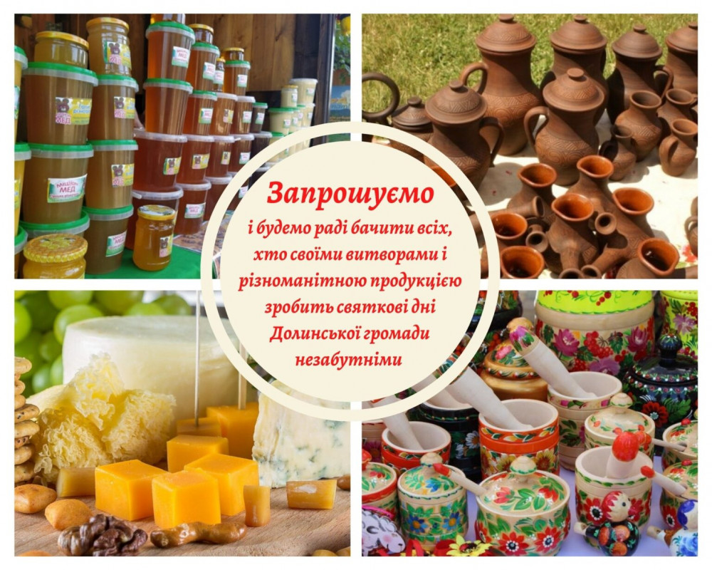 Запрошуємо і будемо раді бачити всіх, хто своїми витворами і різноманітною продукцією зробить святкові дні Долинської громади незабутніми.