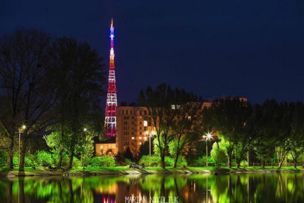 - телевежа заввишки 193 метри, зведена ще у 1965 році, а у 2017 році отримала ефектну патріотичну підсвітку, яка наразі не вмикається.