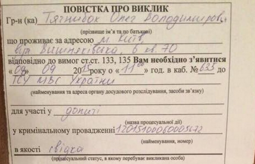 "Цікаво, що і цього разу правоохоронні органи не змогли мені правильно вручити повістку. Якщо я минулого разу йшов на допит через Інтернет, через ЗМІ, то цього разу, навіть виписавши мені повістку, вони неправильно вказали мою домашню адресу, навіть ім'я та по батькові написали Олег Володимирович, хоча, багато хто знає, що я є не Володимировичем", - додав він.