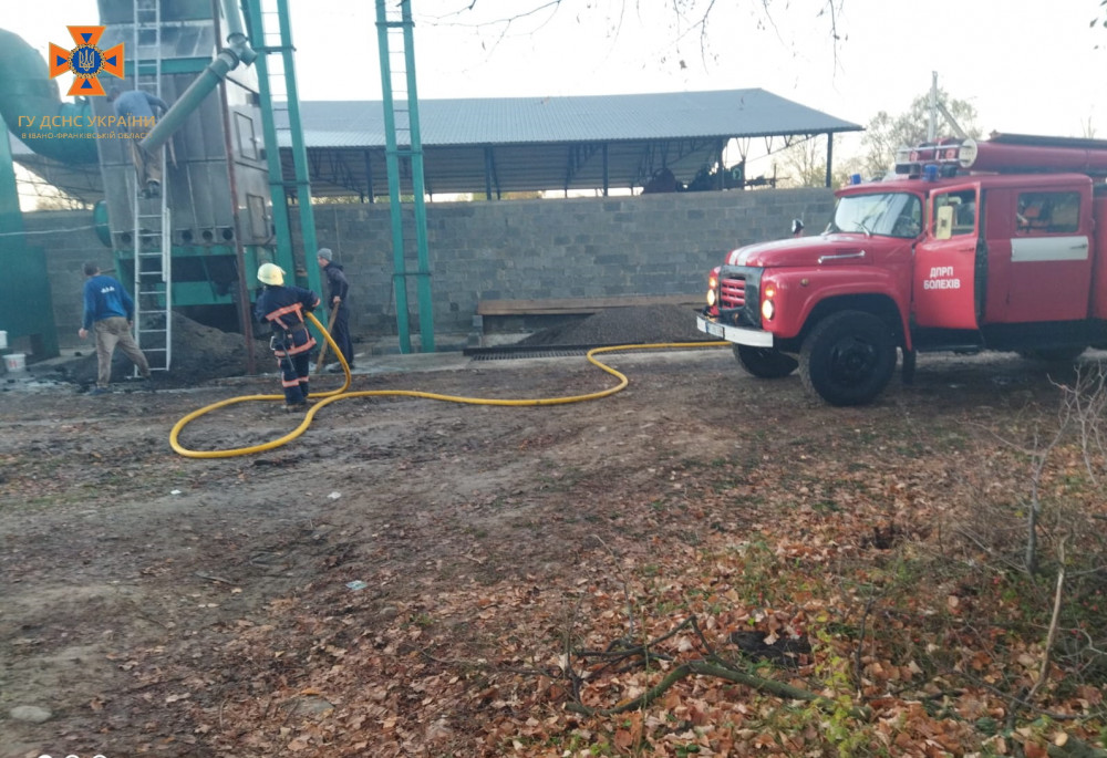 17 жовтня о 07:29 на лінію 101 надійшло повідомлення про пожежу сушки для сушіння зернових культур у селі Міжріччя Болехівської ТГ Калуського району.