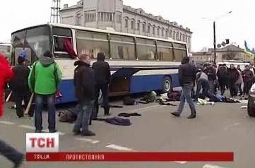 У Борисполі активісти розтрощили шість автобусів з кримськими силовиками