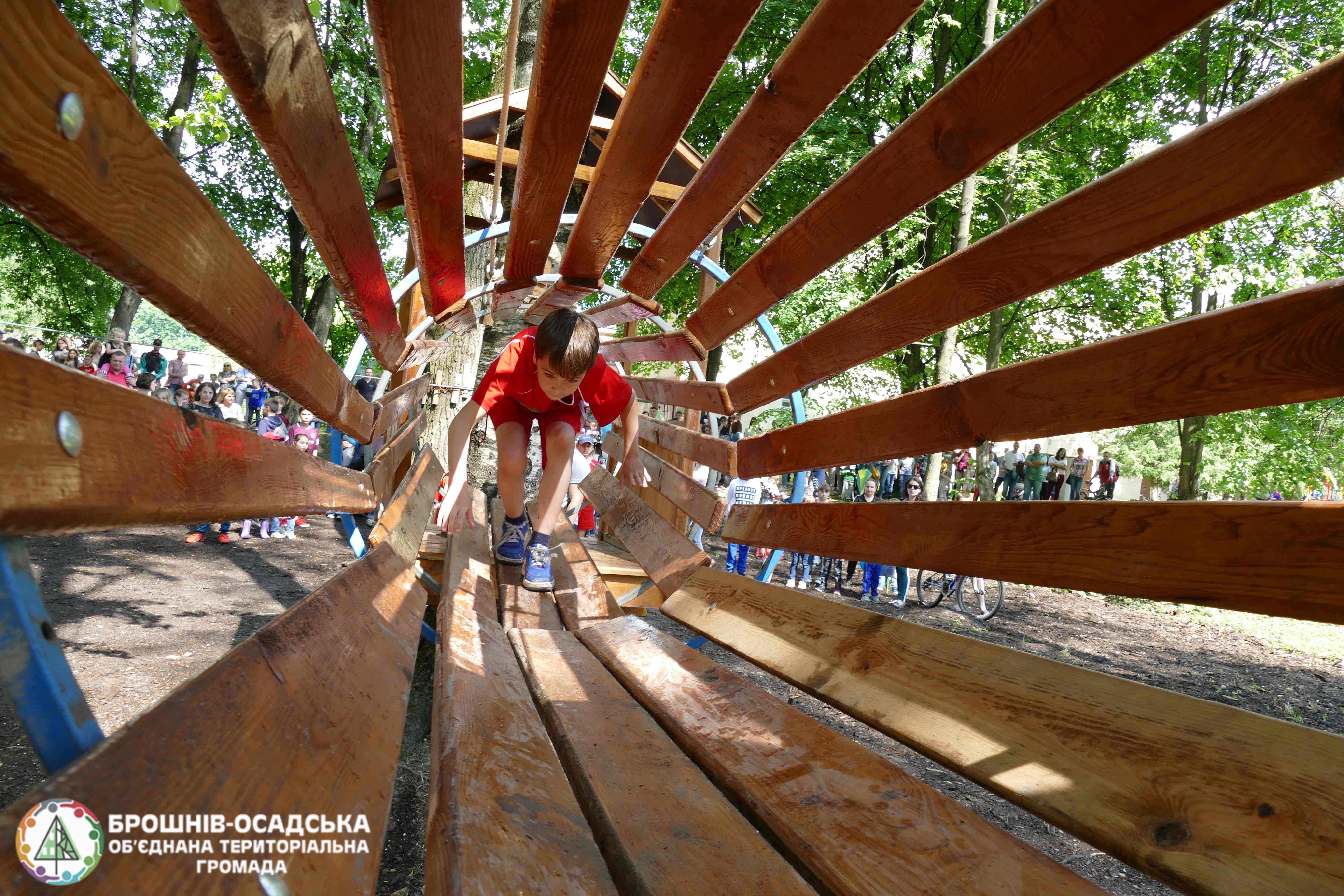 діти Брошнів-Осадської ОТГ отримали неординарний подарунок до свята – у парку біля Брошнів-Осадського Народного дому урочисто відкрили зону активного дозвілля для дітей – ігровий майданчик на базі мотузкового парку.
