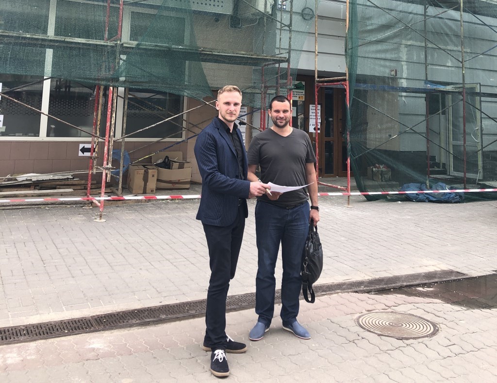 Перед початком робіт у будинку №34 на вулиці Незалежності було перевірено стан конструктивних елементів споруди, декору. Після цього зовнішні стіни очистили від бруду і старого оздоблювального шару та відремонтували виявлені пошкодження (тріщини, заглибини). Далі було підготовлено поверхню під нанесення кількох шарів фарби. Крім того, має бути виконано ремонт піддашків та опорядження цоколя.