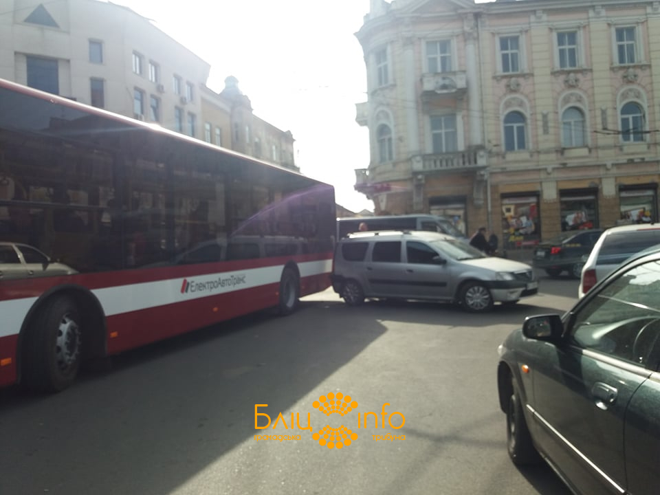 У центрі Франківська не розминулись "Dacia Logan" та комунальний автобус