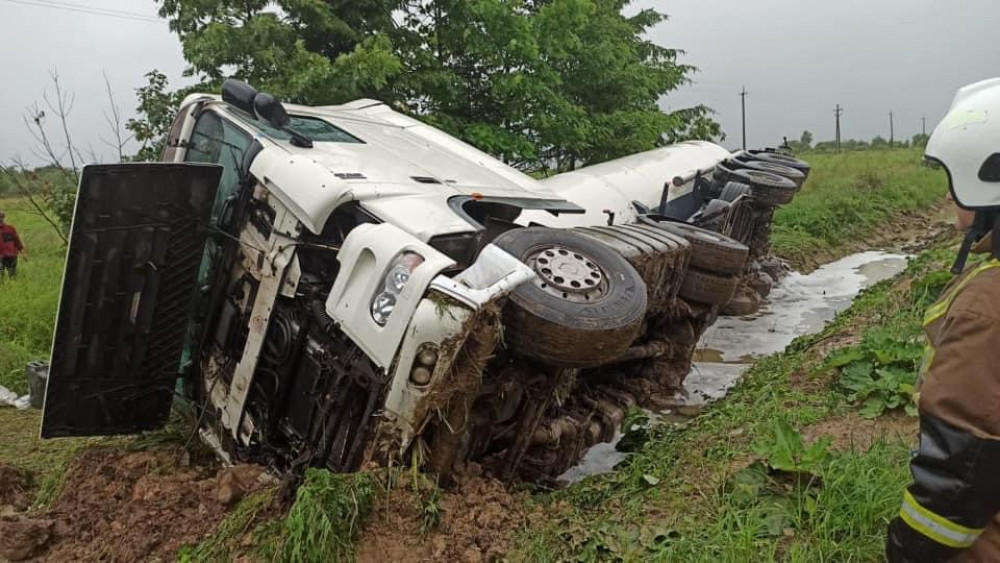Вантажний автомобіль з цистерною для перевезення нафтопродуктів (ДП - об’єм 20 т) з’їхав в кювет та перекинувся на сторону. Про це повідомляє управління ДСНС в області.