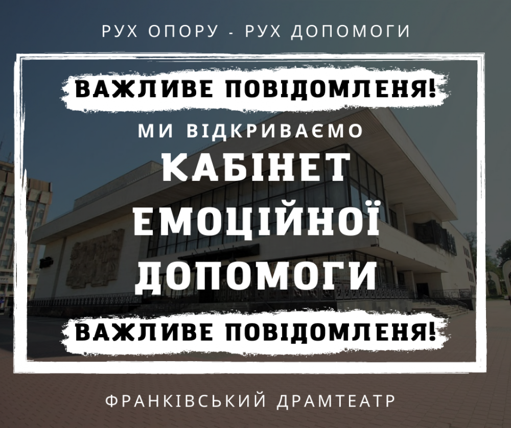 З сьогоднішнього дня у Франківському драмтеатрі працює кабінет емоційної допомоги.