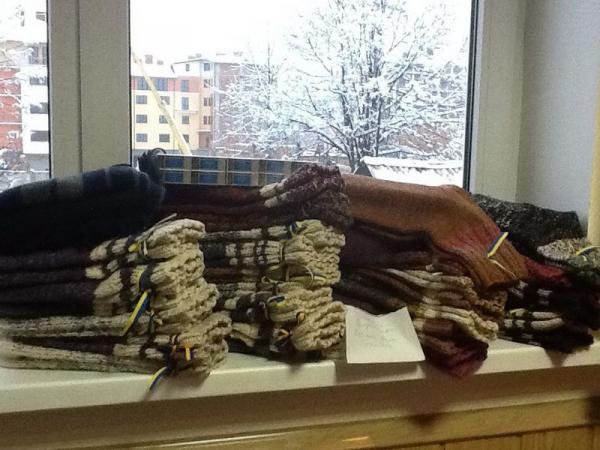 "Це мене просто вразило! Теплі в'язні шкарпетки, дбайливо зв'язані жовтою- блакитною стрічкою! В шкарпетці невеликий подаруночок- чи то зубна паста, чи шоколадка! Дві пані підготували 28 таких "миколайчиків " !!!! Це стільки тепла і любої !!!!! Дякуємо Гушпіт Ользі Володимирівній та Олексюк Іванні Олексіівній!", - написала пані Анушкевичус