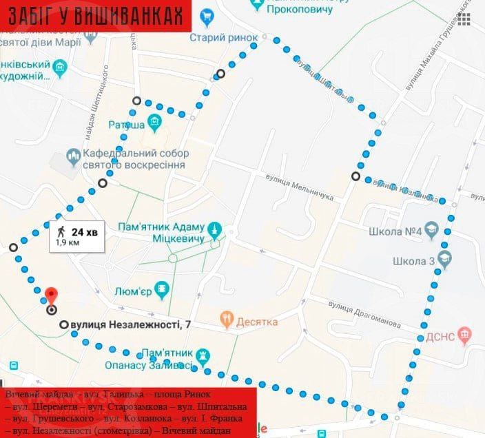 У зв'язку із проведенням заходу 24 серпня 2021 р. з 09.30 год до 11.30 год буде обмежений рух транспорту за маршрутом: