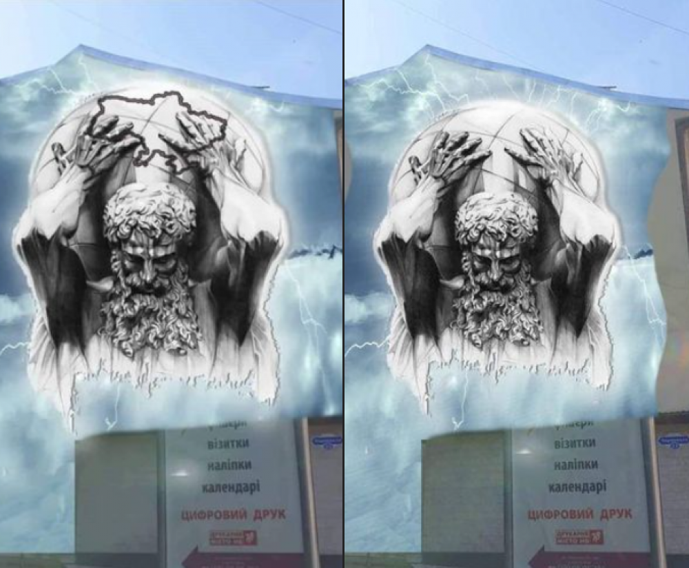 "Він зробив кілька варіантів ескізів та пояснив суть задуму: «Концепція проєкту доволі очевидна: атлант, титан тримає на мужніх плечах земну кулю із силуетом України. Ймовірно, додамо ще елементи символік Євросоюзу. Чому саме така символізація? Тому, що там в будинку є медична організація "Медатлант", це - по-перше. По-друге, актуальність сьогодення й самої ситуації розкривається саме в вирішальній ролі України в стримуванні окупантів та ворога перед Європою й безпосереднє прагнення самої України стати повноправним членом ЄС. Ще один меседж - це прообраз Сізіфової праці із несенням тягаря, як суті життєвої парадигми й самого життєвого кредо»,- кажуть в департаменті.