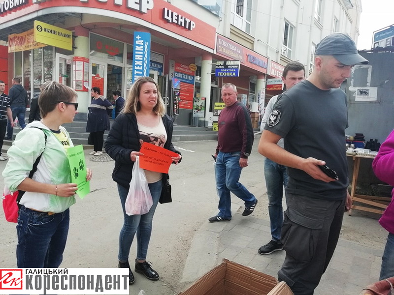 Голова ГО “Дім Сірка” Наталія Когут каже, що виступають проти жінок, які вже близько десяти років на ринку продають хворих тварин. Спочатку волонтери стояли під адмінбудівлею, потім пішли до заступника міського голови Миколи Вітенка. Далі протестувальники подались безпосередньо на ринок, куди викликали також поліцію та Муніципальну варту, пише ГК.