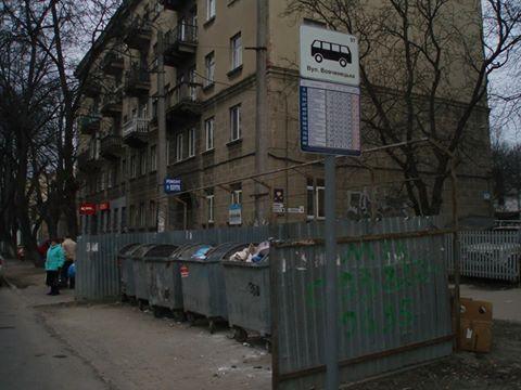 Зупинка чи смітник? На Вовчинецькій вулиці об лаштована нестандартна зупинка. Тут в очікуванні маршрутки не лише пасажири а й сміттєві баки. Їх розмістили позаду знаку автобусної зупинки, через це людям доводиться визирати транспорт крізь смітникову огорожу, або й зовсім виходити на проїзну частину. Відео ТРК Вежа