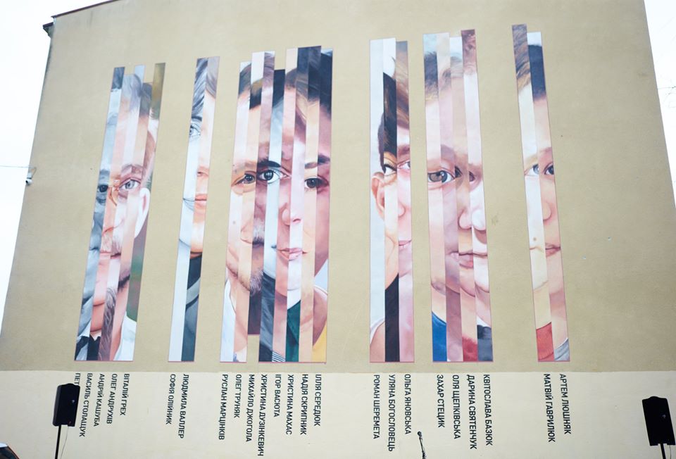 24 обличчя, 24 історії: сьогодні офіційно презентували мурал на фасаді міської дитячої бібліотеки, що на вул. Бандери.