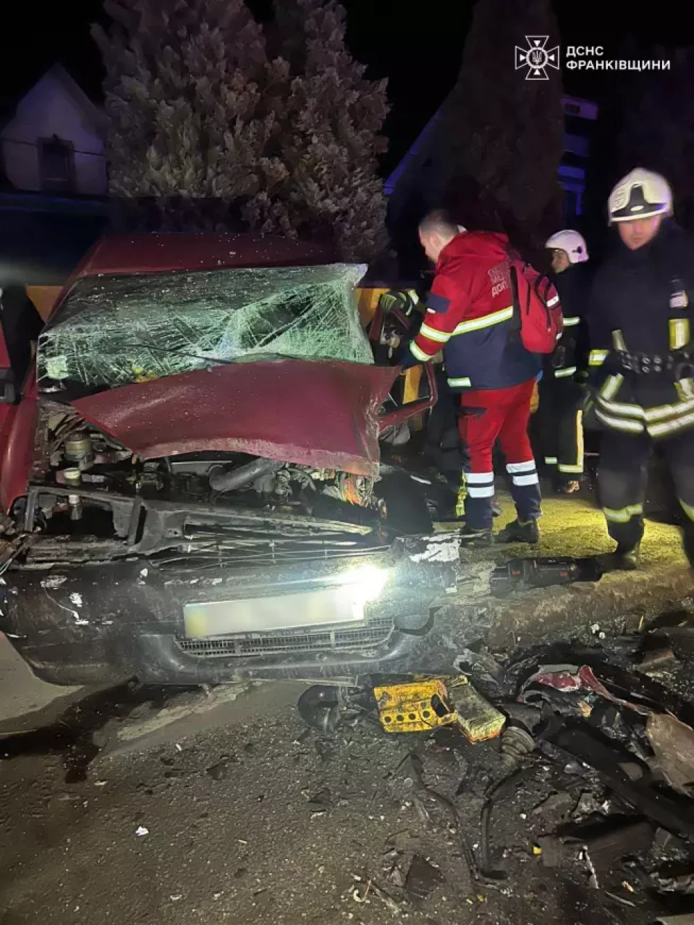 "По прибуттю до місця події надзвичайники за допомогою спеціального інструменту деблокували з понівеченого автомобіля двох людей — чоловіка та жінку — і передали їх медикам швидкої допомоги. Також рятувальники від’єднали клеми акумуляторних батарей, щоб запобігти можливому загорянню транспортного засобу",- кажуть у ДСНС.