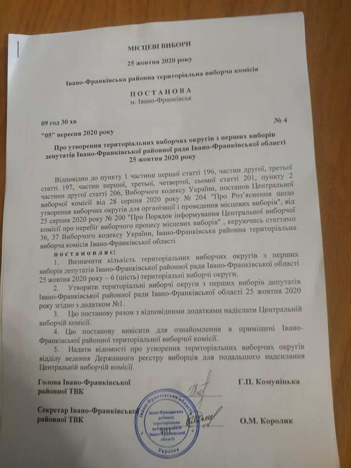 Івано-Франківська міська територіальна виборча комісія утворювала територіальні виборчі округи 5 та 6 вересня.