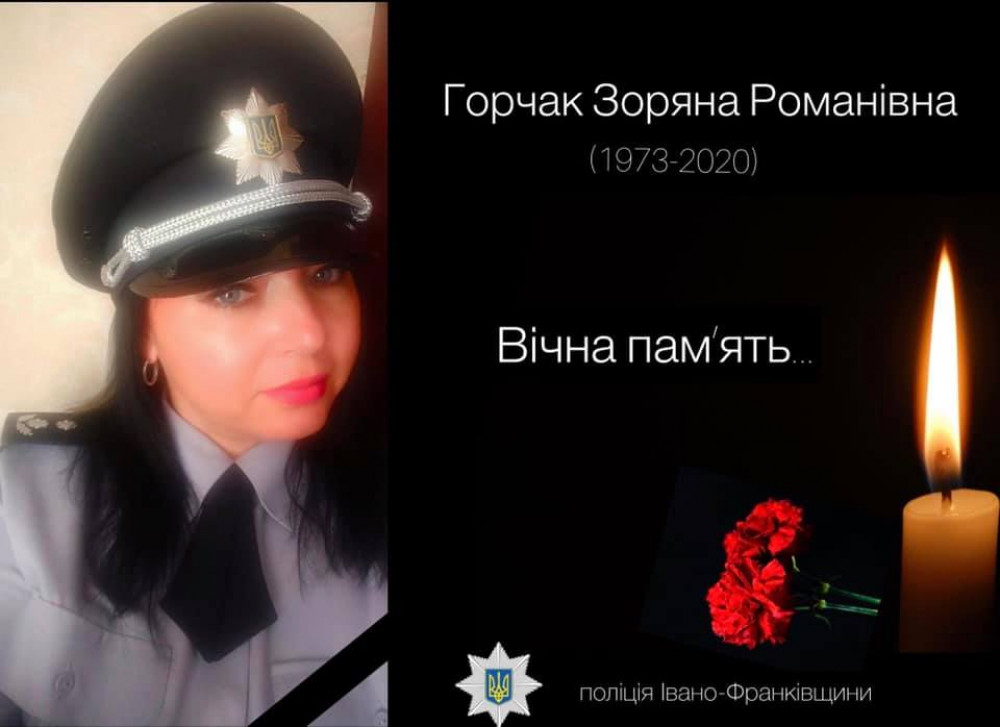 На Івано-Франківщині померла підполковник поліції Зоряни Горчак – старший інспектор з особливих доручень відділу режиму та технічного захисту інформації ГУНП в області.