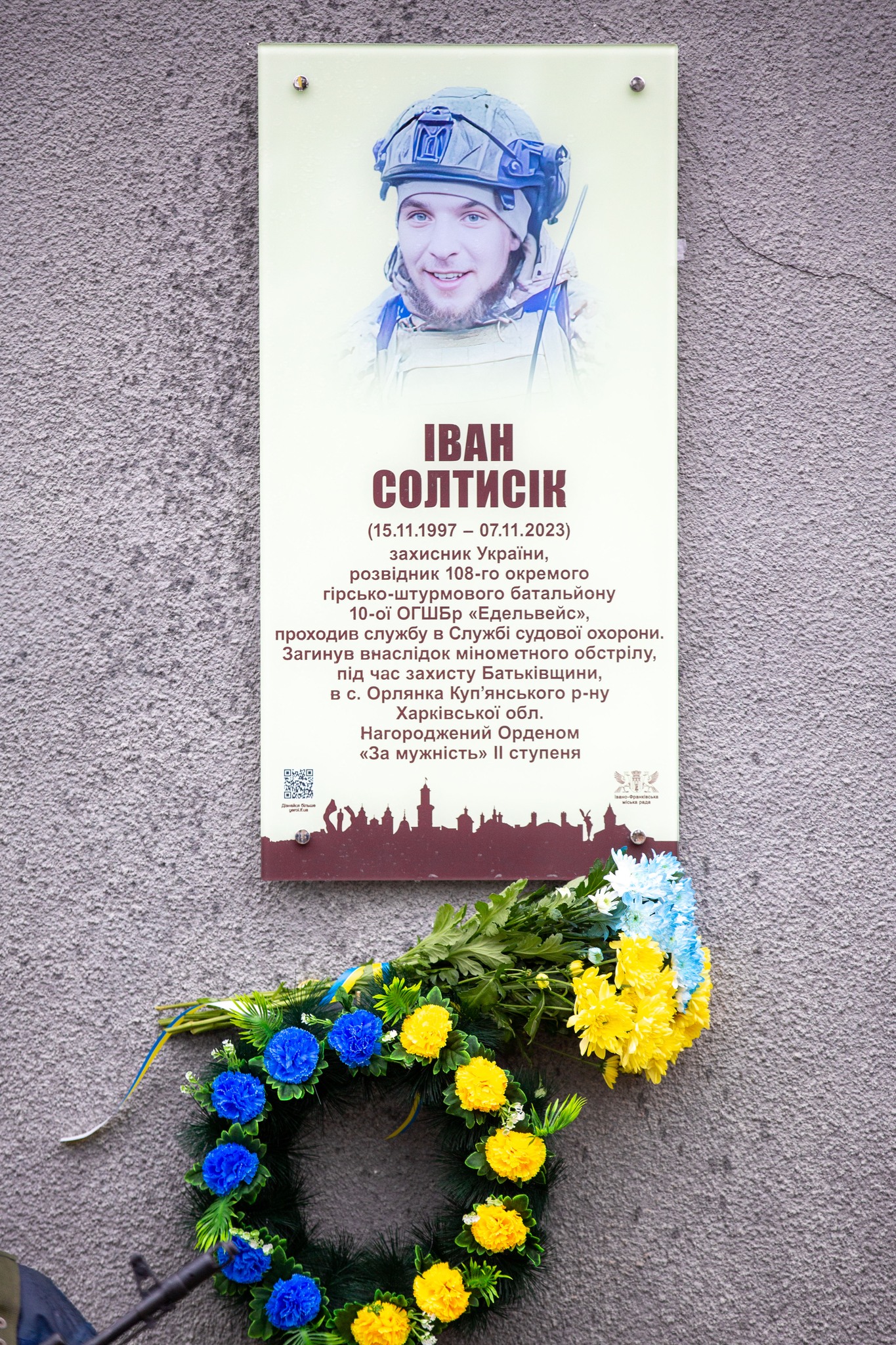 В Івано-Франківську відкрили меморіальну дошку на честь загиблого військового 10 окремої гірсько-штурмової бригади "Едельвейс" Івана Солтисіка.