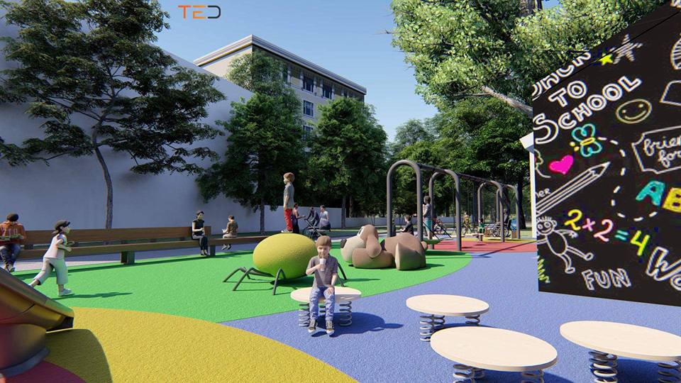 "Місто спільно з Tyco Electronics та ГО "Мами Прикарпаття" має на меті облаштувати на Валах спортивно-ігровий майданчик. Матусі з дітьми полюбляють тут відпочивати і наша ціль зробити це місце комфортним та функціональним. Ось попередня візуалізація проекту", - написав мер.