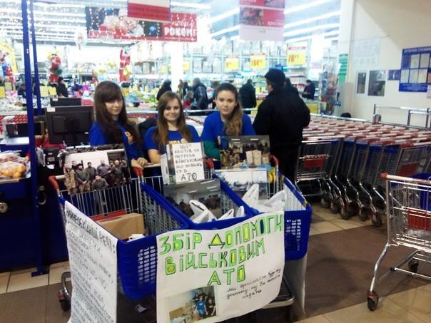 В одному з супермаркетів Івано-Франківська поліцейські охорони затримали жінку, яка протягом дня виносила з магазину продукти харчування, які збирались для потреб учасників АТО.