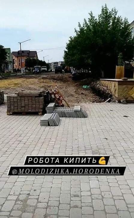 «Проводиться реконструкція центральної частини м.Городенки, споруджується нова пішохідна зона для місцевих жителів. Дані роботи виконує фірма ТОВ «Промбудсервіс-Косів», яка виграла тендер, оголошений міською радою», – йшлося у повідомленні.