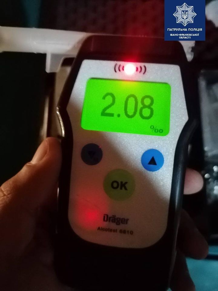 У присутності свідків водій пройшов огляд. Цього разу результат також виявився позитивним — 2.08 проміле.