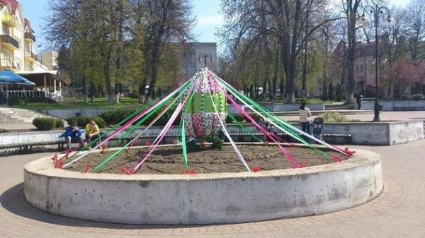 Перед Великоднем на площі Героїв у Калуші з’явився незвичний об’єкт — гігантська писанка, прикрашена квітами та стрічками.
