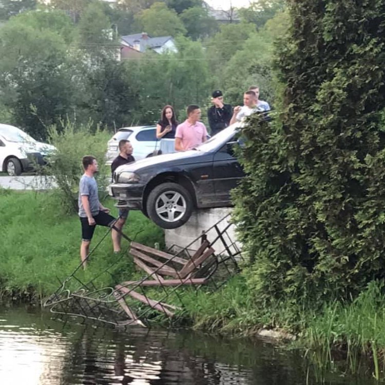 За їхїніми словами, водій автомобіля "BMW" на іноземній реєстрації протаранив лавку, та чуть не звалився у озеро. Однак від падіння автівку врятувала та смакма лавка.