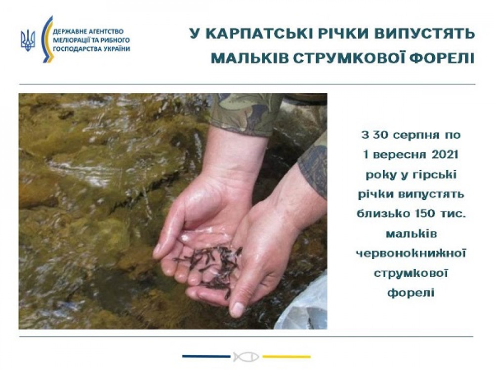 З 30 серпня по 1 вересня 2021 року зариблюватимуться гірські річки на території Чернівецької та Івано-Франківської областей.